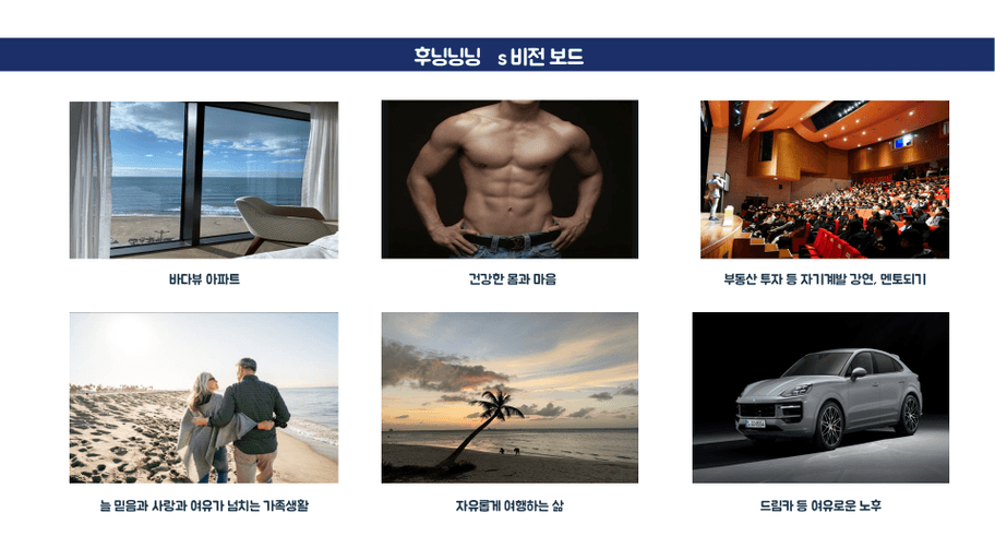와우~!!후닝닝닝 비전보드 계획있게 잘짜셨네요^^ 성취하는 그날까지 화이팅!! 입니다~