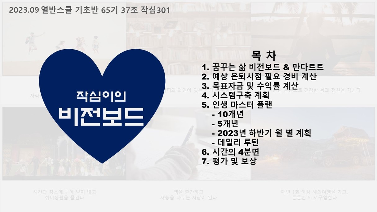 [열반스쿨 기초반 65기 내 3(삶)의 앞날을 금빛으로 7해보조 작심301] 작심이의 비전보드 탄생!