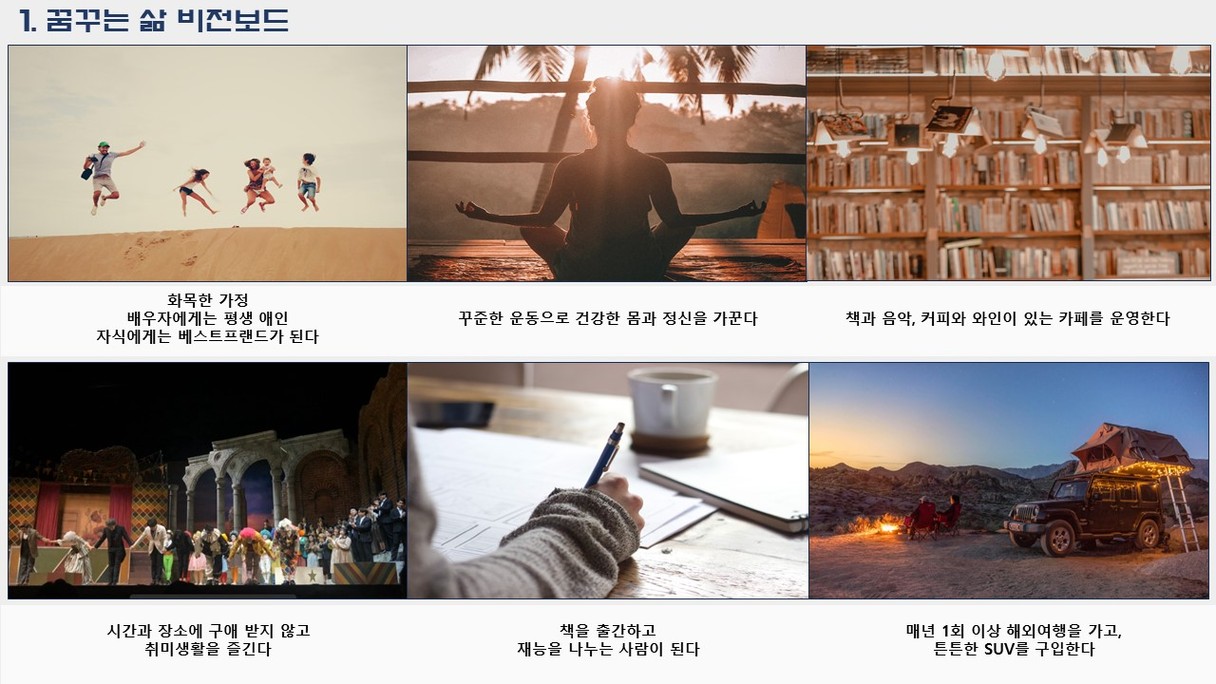 강의를 들으며 비전보드 작성의 중요성에 대해 알았고,