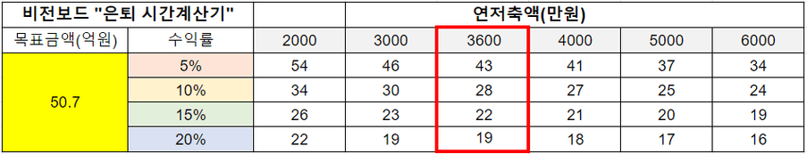 STEP4. 수익률에 따른 은퇴 가능 나이