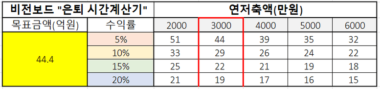 목표 금액 44.4억 (현재 나이 42세, 연저축액 3000만원)