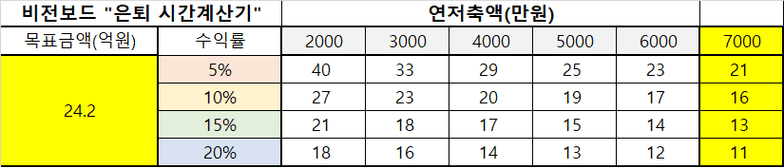 목표 금액 41.6억 (현재 나이 50세, 연저축액 7000만원)