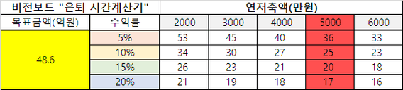목표금액 : 48.6억 (현재나이 42세, 연저축액 : 5000만원)