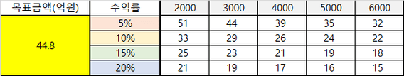 - 수익률 15%: 50세 (2044년) <- 목표!