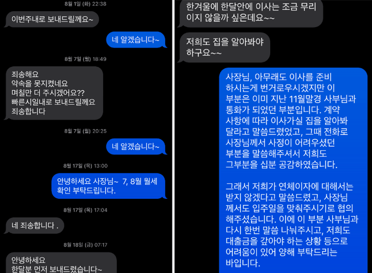 사과와 함께 3월 중으로 이사일정을 알아보겠다는 말씀을 해주셨습니다.