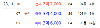 최근 거래된 105동은
