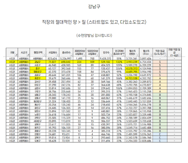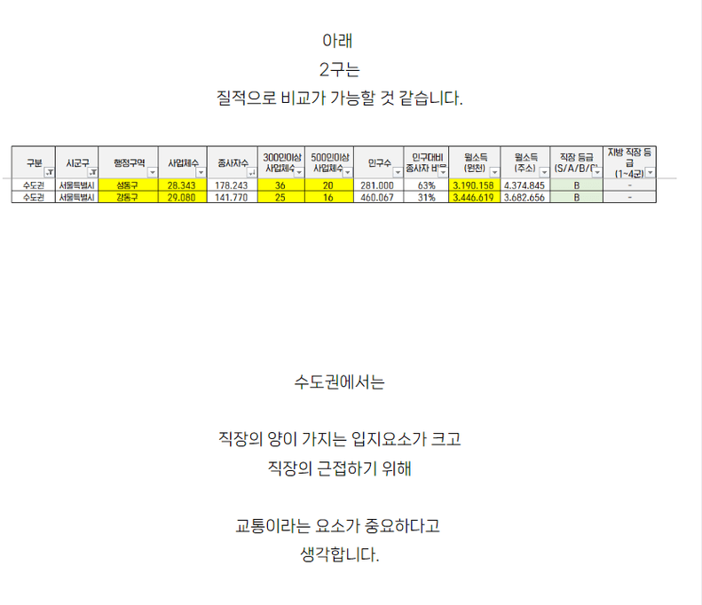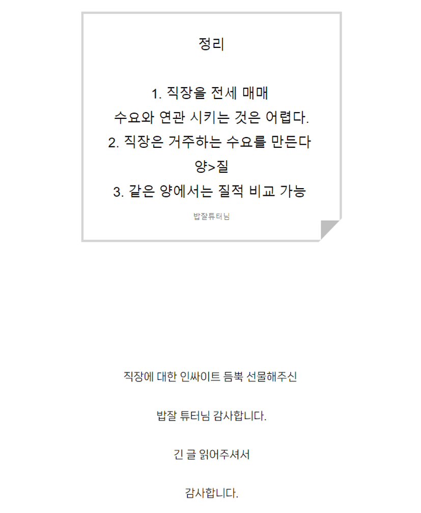 직장과 양과 질에 대해 얘기해주셔서 감사합니다! 수도권은 그래서 교통이 아닌가 싶기도 하네요