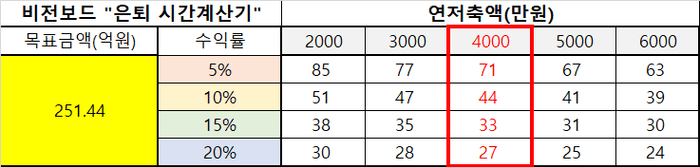 4. 수익률에 따른 은퇴 가능 나이 계산