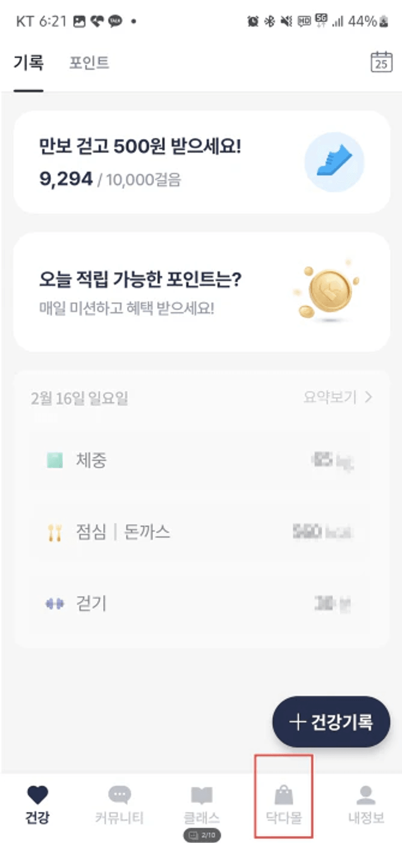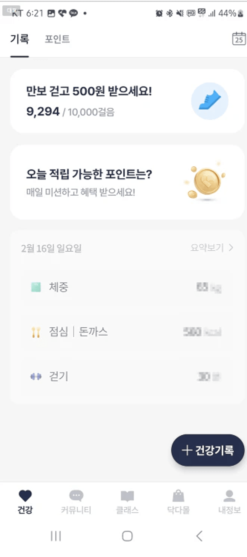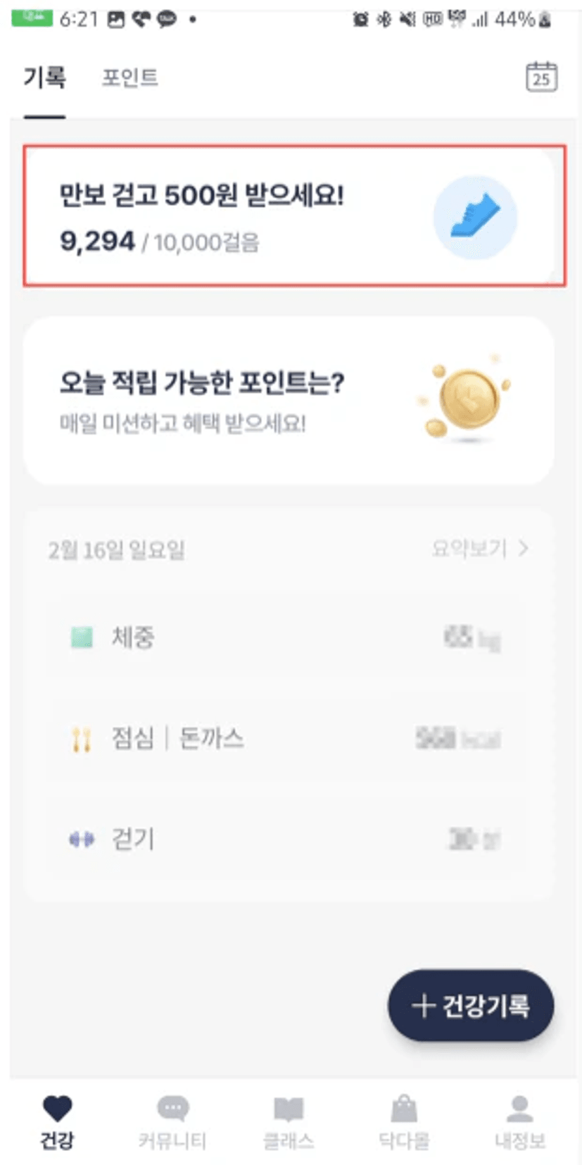 홈 화면에서도 보셨듯이 실시간으로 걸음 수가 체크되고 있어서 10,000보를 다 채우시면