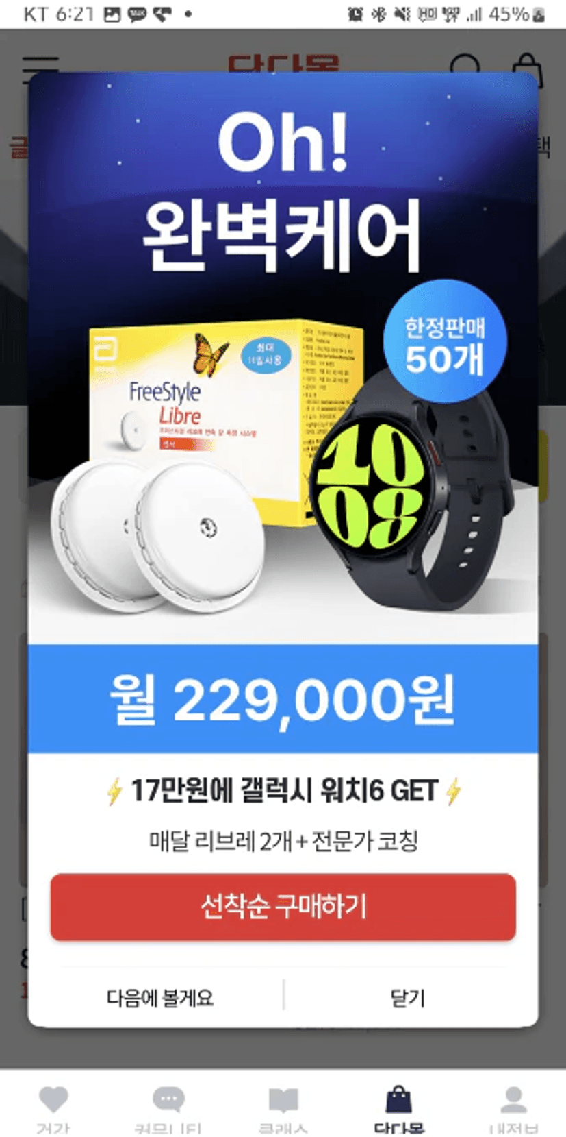 먼저 앱에 로그인 하고 들어가서 홈 화면으로 가면 이 화면이 떠있을 텐데요~