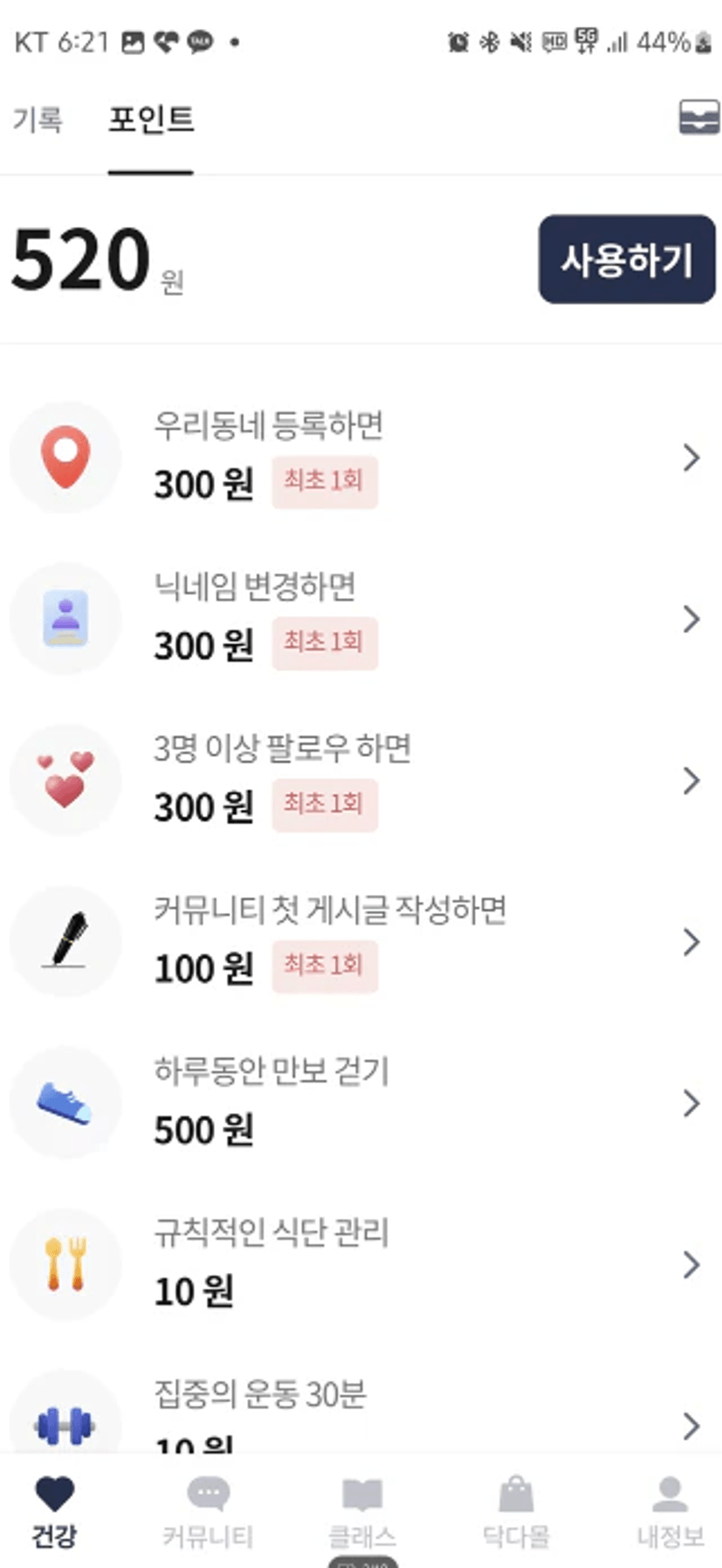 1만보를 걸을 때마다 500원의 적립금을 주는 깨알 꿀 같은 앱이랍니다~~