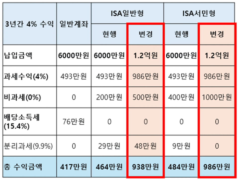 ISA(개인종합자산관리계좌)는 하나의 계좌로 예·적금과 주식, 펀드, 채권 등 다양한 금융 상품에 투자하면서 절세 효과를 누릴 수 있어 ‘만능 통장’으로 불리는 계좌예요. 세금 혜택이 늘어나면 투자자들은 그만큼 높은 실질 투자수익률을 기대할 수 있죠.