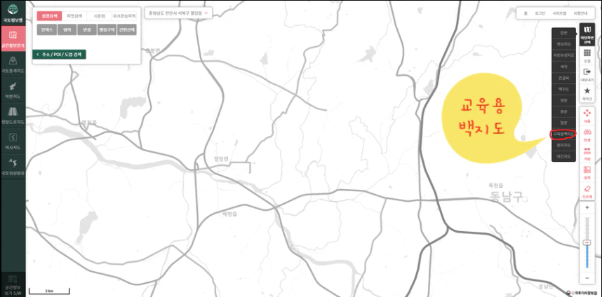 국토정보플랫폼 -> 바탕화면 -> 교육용백지도