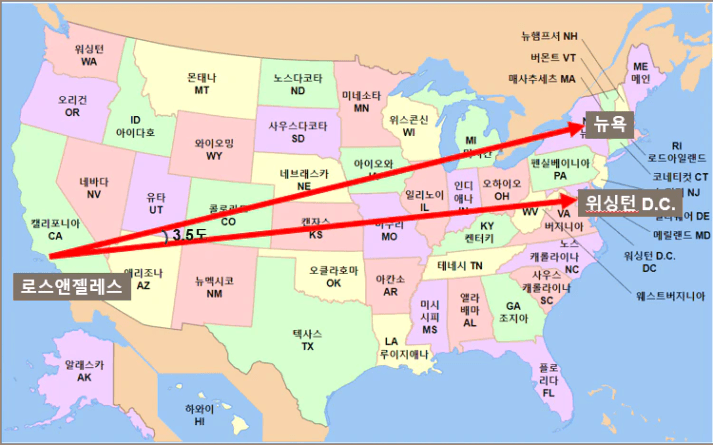 미국 로스엔젤레스에서 3.5도만 틀어져도 뉴욕이 아닌 위싱턴 D.C. 도착하면 안되잖아요!