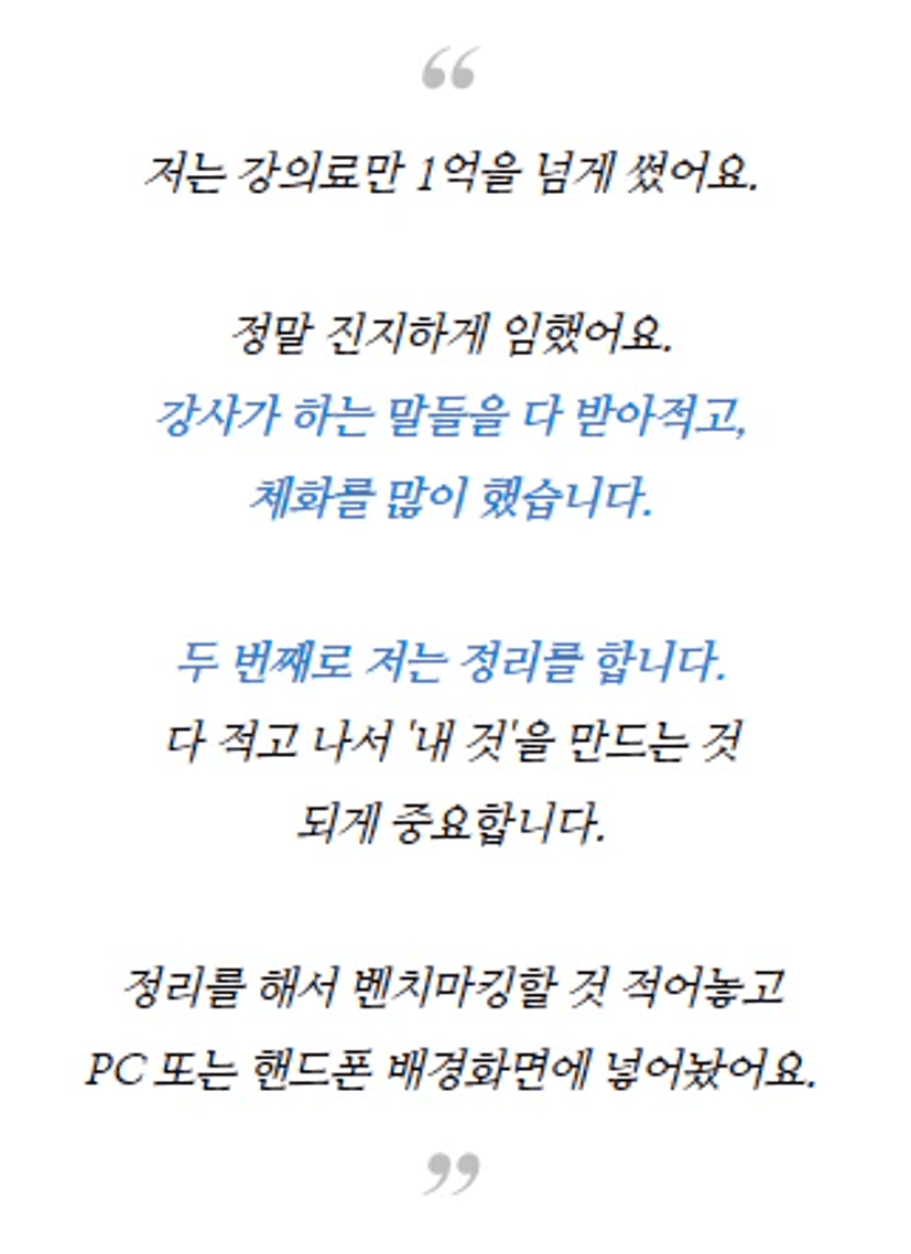 내 언어로 정리하는 것도 좋지만, 필사를 통해 정확한 의미를 이해해야 한다는 걸 깨달았습니다. 허씨허씨님 글이 정말 좋아요 감사해요