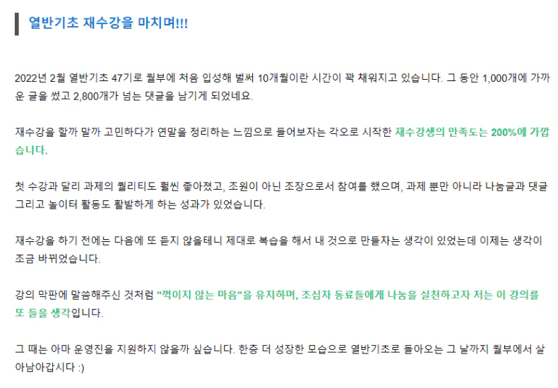 재수강을 하면서 '확신'을 얻고 성장했다면