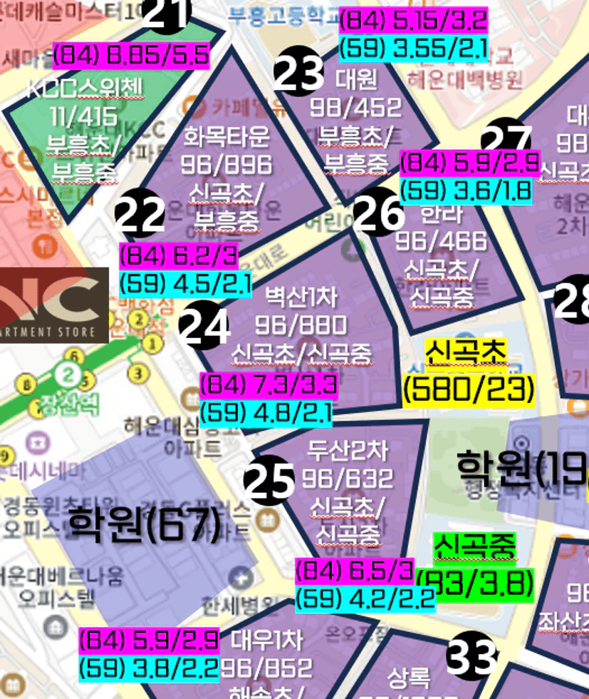 해운대구 좌동에서 장산역 역세권인 벽산1차 vs 화목타운 vs 두산2차를 비교해보았는데요.