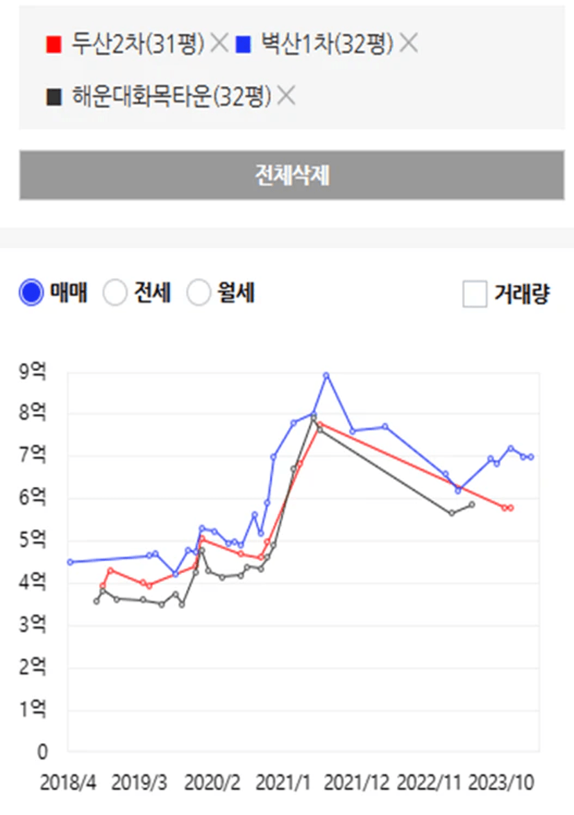 (벽산1차는 매매 매물이 없어 최근2월 실거래가, 두산2차/화목은 실거래가 없어서 최저 네이버 호가 기준입니다.)