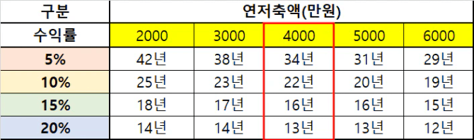 목표 금액 46.8억 (현재 42세, 연저축액 4000만원)