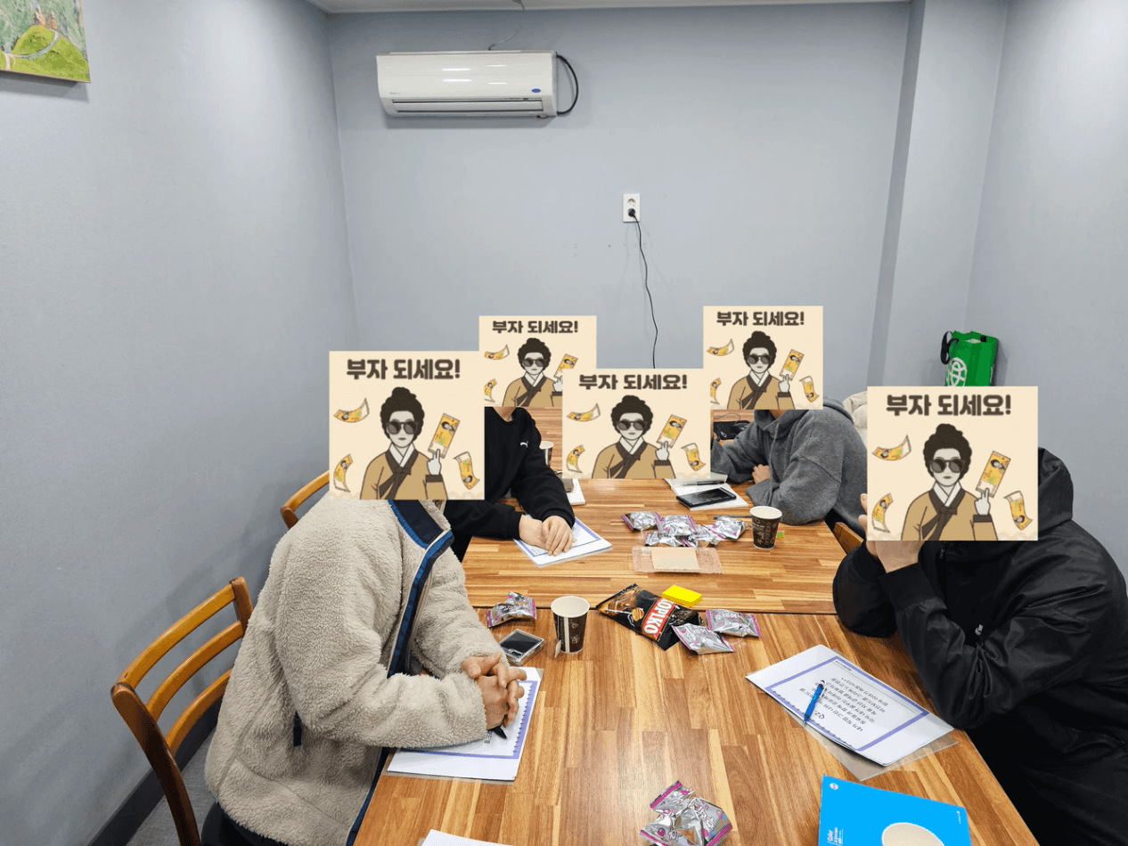 노트북이 중간에 있는 부자 되세요! 라는 곳에 가려져 있습니다. 온라인으로 참석했습니다~~~
