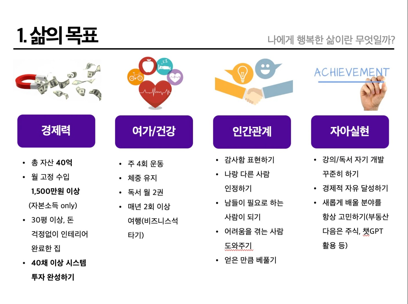 지금까지는 성공하고싶고 돈이 많았으면 좋겠다는 막연한 생각만 가지고 있었던 것 같습니다.