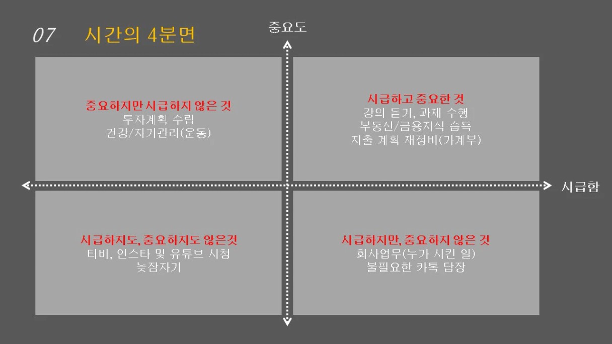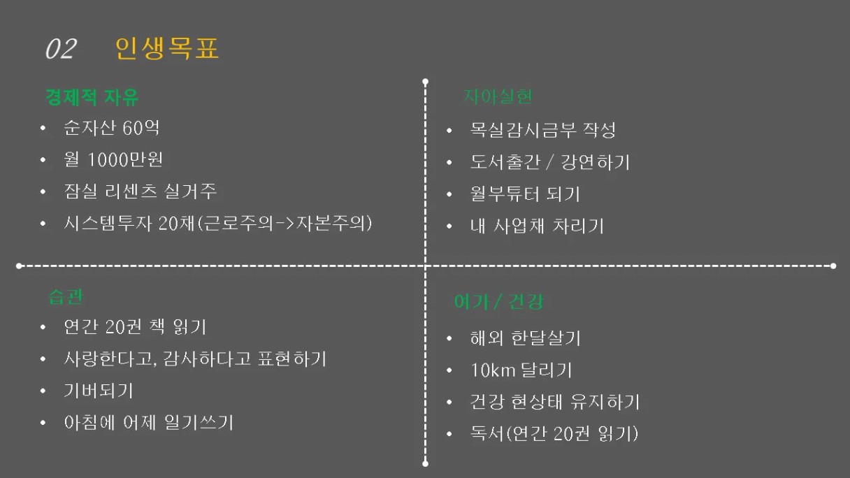 나의 10년, 5년, 3년, 1년, 1달, 1주일, 1일을 어떻게 보낼지 생각하고 실천하며
