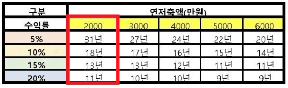 ♥ 수익률 20%: 58세 (2035년)