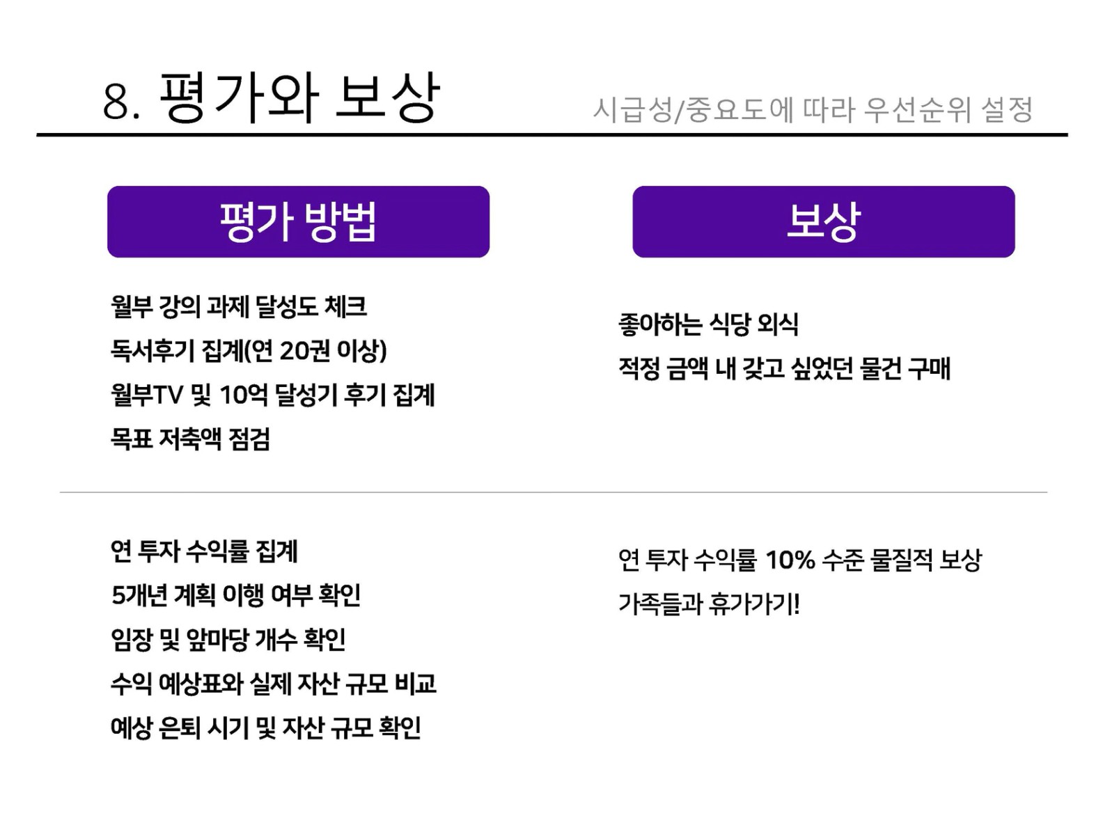 나의 노후자금이 아직 먼 꿈나라 얘기 같아서 회피하고 있었는데 계산을 하고 현재 나의 자산을 확인하니 해야할 일이 많구나. 경각심이 들었다. 월부에서 꾸준히 제대로 하는 사람이 될 것이다.