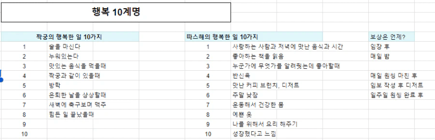 스프레드 시트에 저와 짝궁이 함께 이야기를 나누며