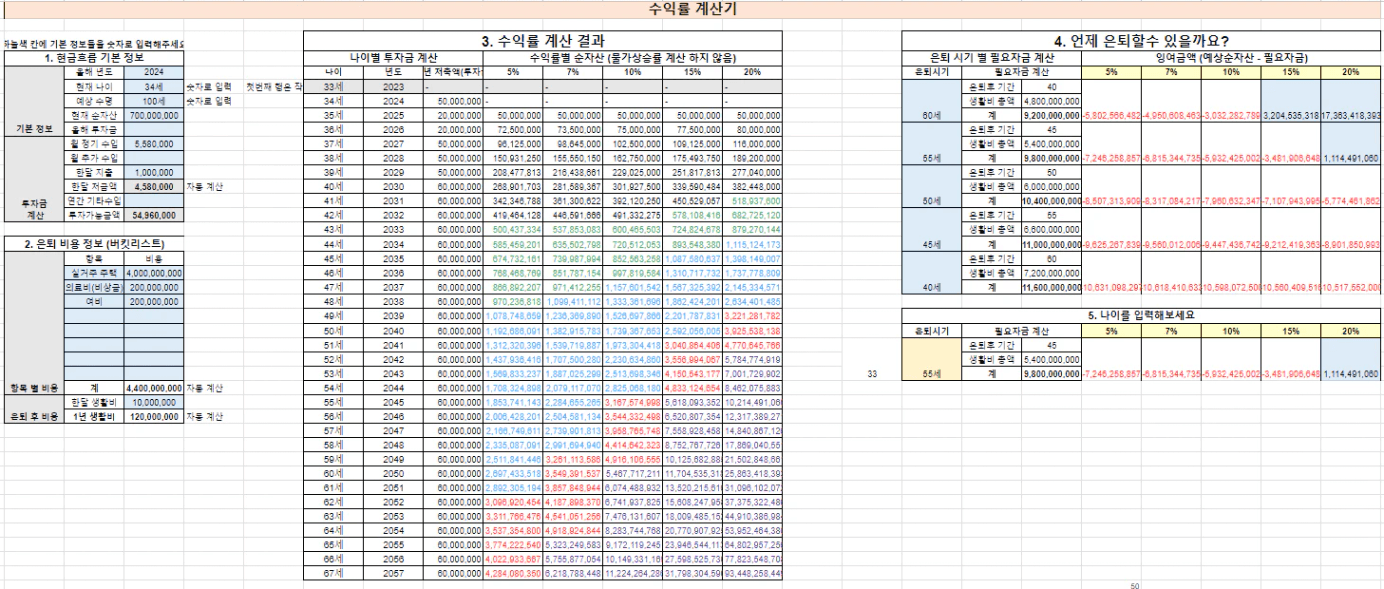 수익률과 은퇴가능 시기를 예측해보았습니다