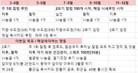 올해 목표를 이루기 위해서 분기별로 해야할 일과