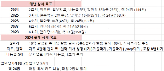 따라서 5년 목표에 맞는 2024~2028년의 목표와