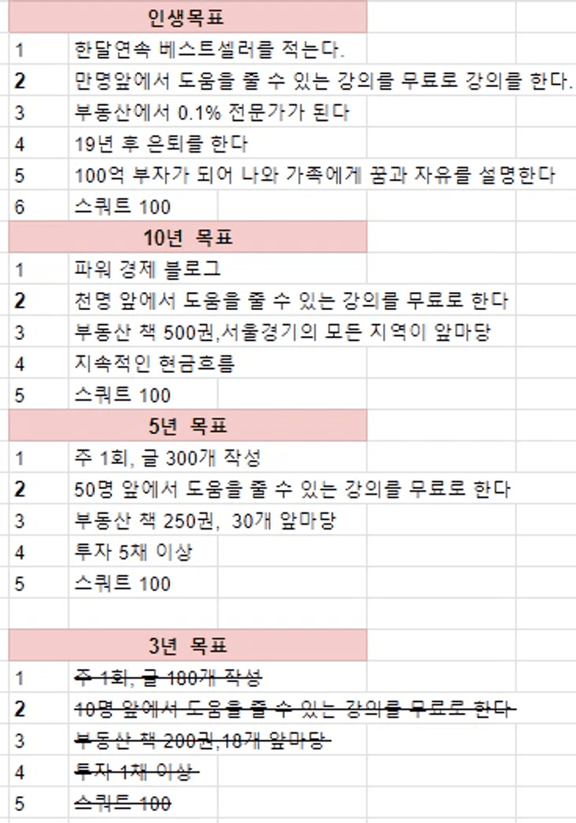 하지만 작년에 적은 목표가 이루어져있는 걸 보면