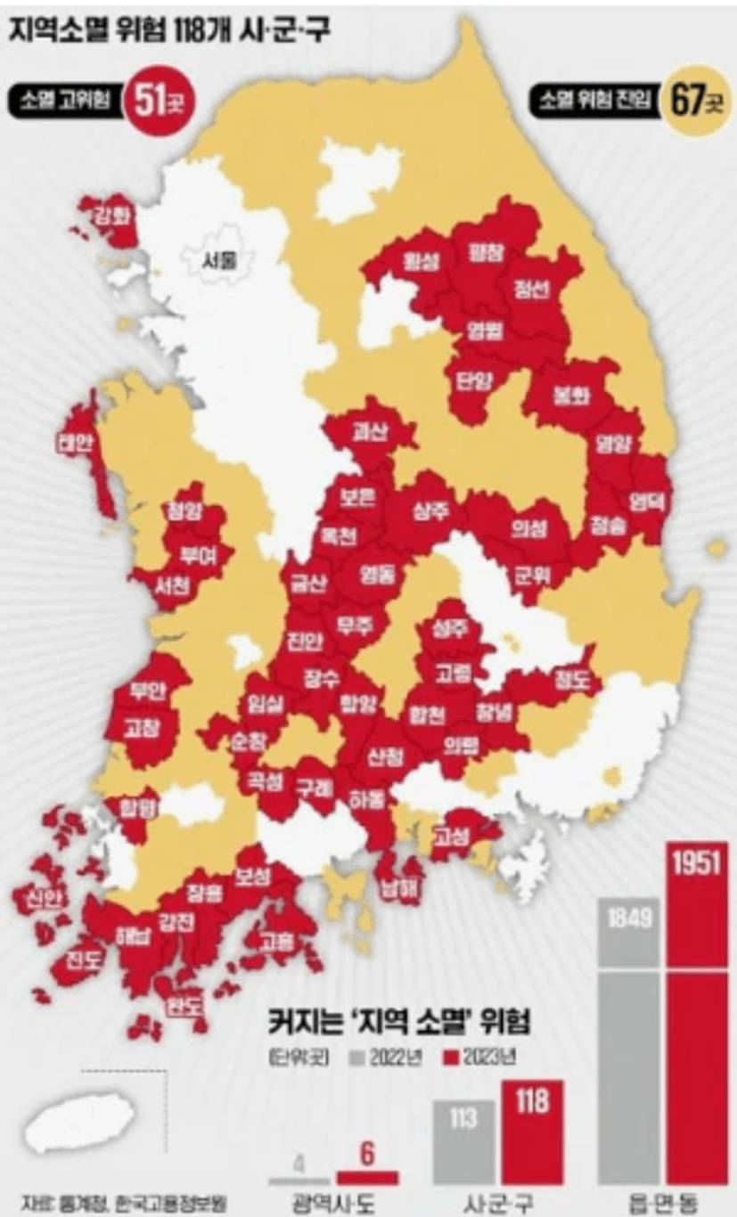 제가 갔던 지역은 소멸 고위험지역은 아니지만, 소멸 위험에 이미 진입한 지역입니다.