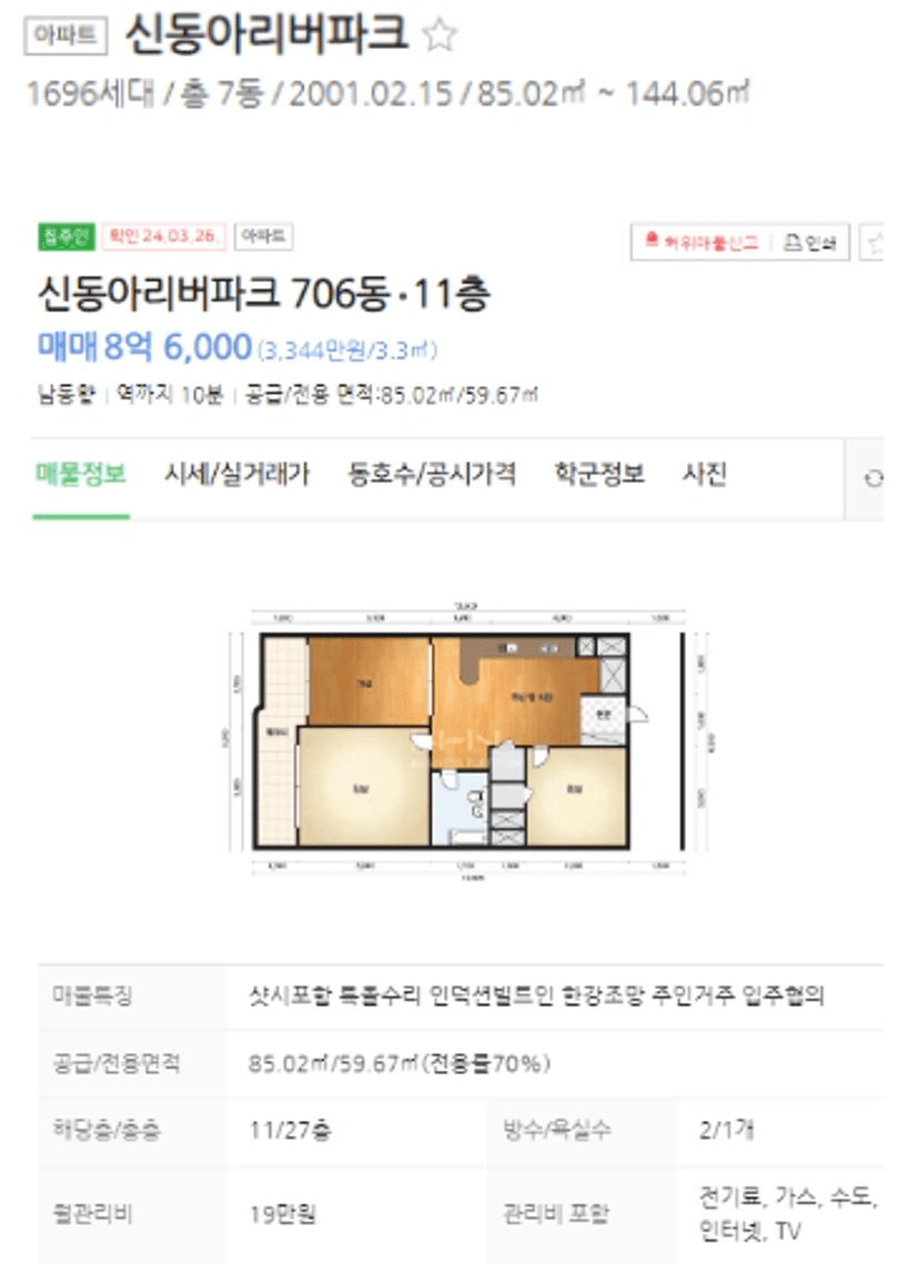 단지와 매물에 대해 물어야 하는데