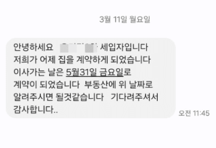 임차인에게 이사날이 확정이라는 메세지를 받았을 때