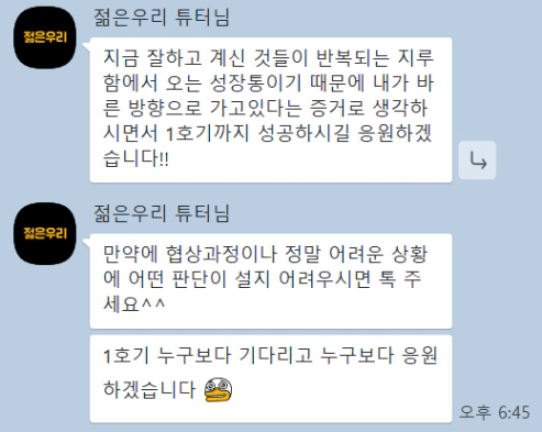 진심어린 코칭 뿐만 아니라 응원의 톡까지 주시면서 튜터님의 응원에 힘을 팍팍 받고
