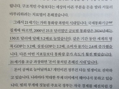 글로벌 통화량 2000년 25조 달러 2024년 130조 달러(5.2배 현금가치 하락) 한국 통화량 2000년 691조 2024년 4045조(5.8배 원화가치 하락) 한국 통화량은 2020년부터 2024년까지 4년간 1000조가 늘었다. 24년간 3350조가 늘었는데 최근 4년간 1000조가 늘어난 것이다. 괜한 이야기하는 게 아니다. 누군가를 겁주려는 것도 아니다. 투자는 비범한 자들이 부자가 되기 위한 도구가 아니라 평범한 사람이라도 생존을 위해 익혀야 하는 무기다.