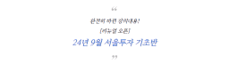 (예정) “서울투자 기초반” 정규강의 안내 〈8.27(화) 오전 11시 선착순〉