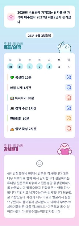 [지투28기 국송이 튜터님이 가꾼 아홉송2 꽃이 만7ㅐ했조 박곰돌1] 26-04-03 목실감