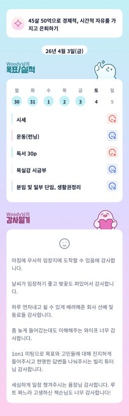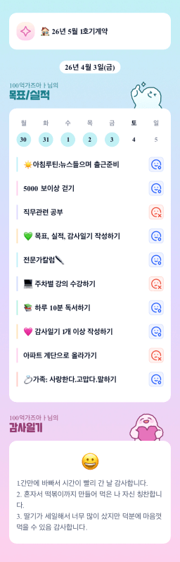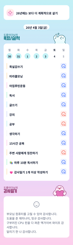 [하나씩] 260403목실감 누적 61일, 연속 4일 진행중