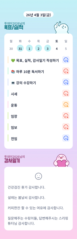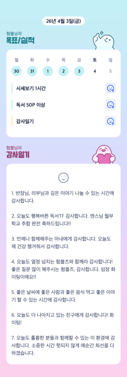 [에이스4반/독서TF 험블] 4월 3일(금) 감사일기