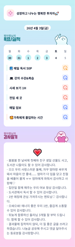 [자식부자] 목실감 누적 274일, 연속 223일 진행중
