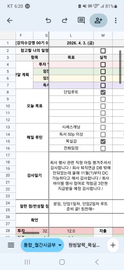 [지방투자 기초반 32기 32조 하훈맘] 목실감 누적 86일, 연속 1일 진행중