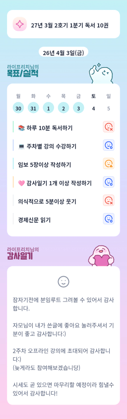 [실준 73기 2번 0ㅕ름에 다 등기쳤군포🎶이켄] 26. 4. 3 목실감