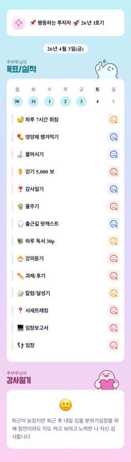 [행편인] 목실감 누적 154일, 연속 34일 진행중_260403