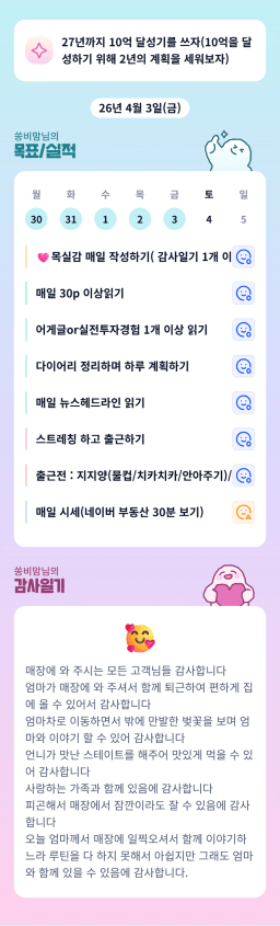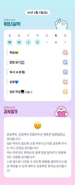 [배배영] 4.3 목실감 누적 169일, 연속 6일 진행중