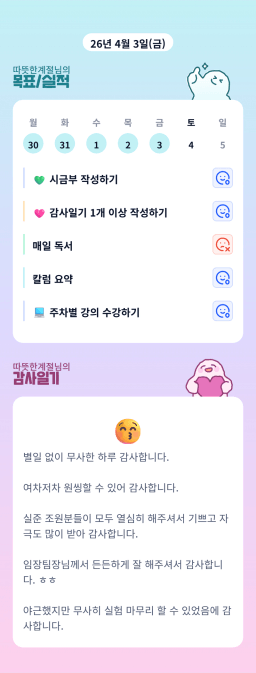 [따뜻한계절] 목실감 누적 169일, 연속 160일 진행중