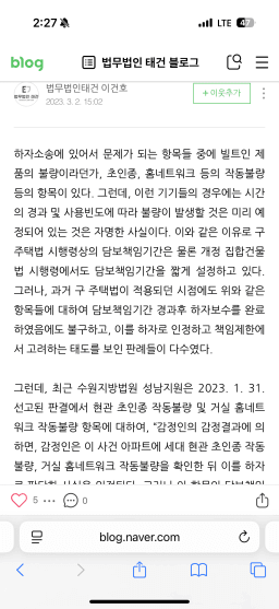 초인종 하자담보 포함여부 여쭈어 봅니다.