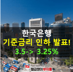 한은 기준금리 인하 발표! ( 한국은행, 0.25% 인하, 이유, 부동산 영향은?)